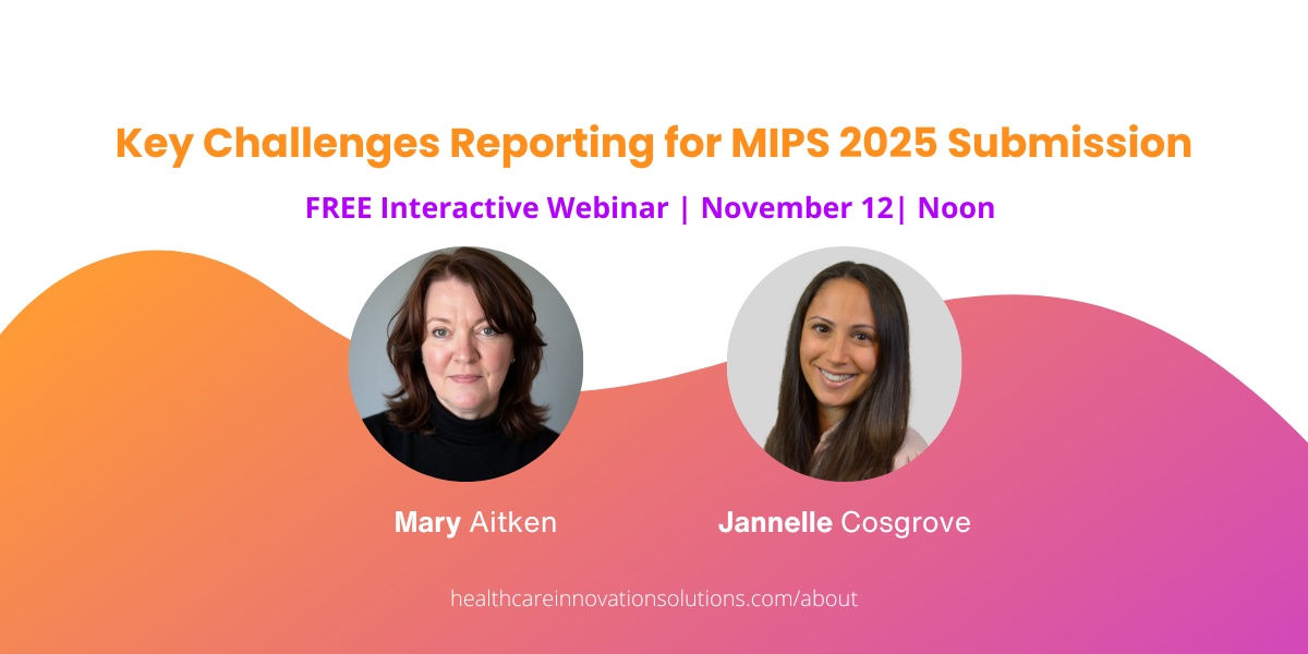 Successfully navigating MIPS reporting has never been more challenging or more critical. With evolving CMS requirements, shifting benchmarks, and the risk of financial penalties for underperformance, practices need a clear strategy to protect revenue and maximize incentives. Join two of our most seasoned MIPS experts, Mary Aitken RN BSN and Jannelle Cosgrove, on November 12th at 12pm ET as they discuss how provider practices can develop a successful submission for 2025. This informational and conversational webinar will guide you through the most common pitfalls in MIPS reporting for 2025, from incomplete data and technical barriers to regulatory complexity and submission logistics.